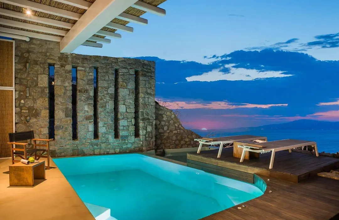 Een korte rit brengt gasten naar Mikonos luchthaven.Het is voorzien van een privézwembad plus een hot tub.